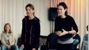 Ellen explains an exercise to the participants, who are from all over Europe en even the USA. We’ll choose a disturbance: what bothers you? Next, we’ll kiss that frog, meaning: we’ll make space for the problem. We’ll give it voice, movement, energy – amplify it. When you “get” the energy of this disturbance you may find what’s good in it. When you embrace it, it might shift. This is the magic of the mystic. It’s hard to believe that a frog will become beautiful and be part of the solution – until you experience it.