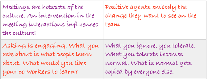 1. Meetings are hotspots of the culture. An intervention in the meeting interactions influences the culture!